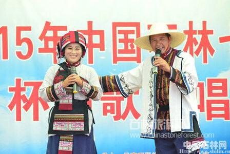 8月16日,第二届中华情歌大集?2015年中国石林七夕情歌大汇“水上石林”杯彝语情歌对唱比赛在石林彝族第一村激情上演。