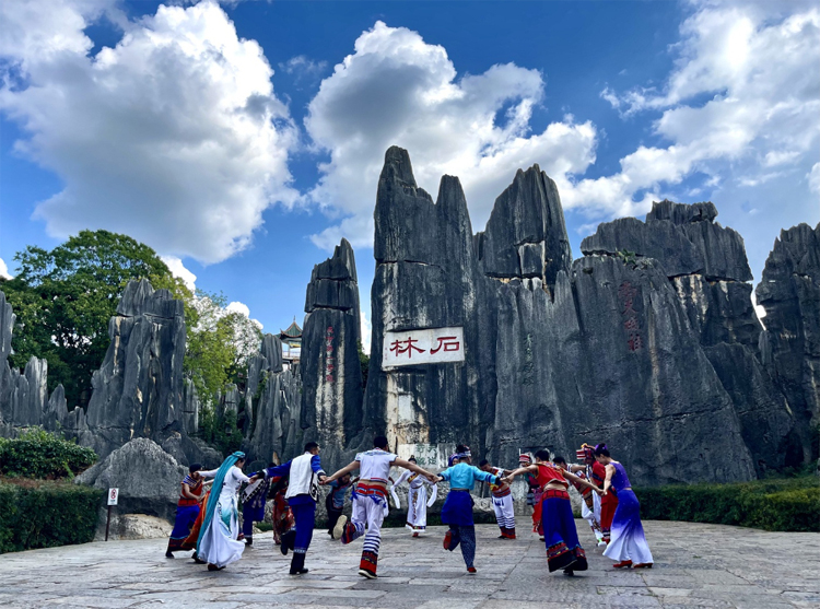 在歌曲诞生地石林彝族自治县,千万年的地质演变镌刻出雄奇险秀的喀斯特奇观,这里不仅是令人心驰神往的“世界自然遗产”,更在岁月流转中悄然成为联结四方、促进各民族心手相牵的温情纽带。