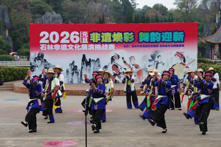 1月1日,石林风景区内鼓乐喧天、彩衣飞扬,2026元旦“非遗焕彩 舞韵迎新”石林非遗文化展演挑战赛正式拉开帷幕。活动以 “传承非遗文脉,共庆新春佳节” 为核心,将石林独特的民族文化与节日氛围深度融合,为游客朋友们献上一场沉浸式的文化盛宴,为期三天(1月1日—1月3日)的精彩赛事,让冬日的石林更添暖意与活力。
