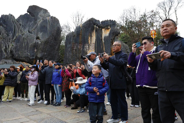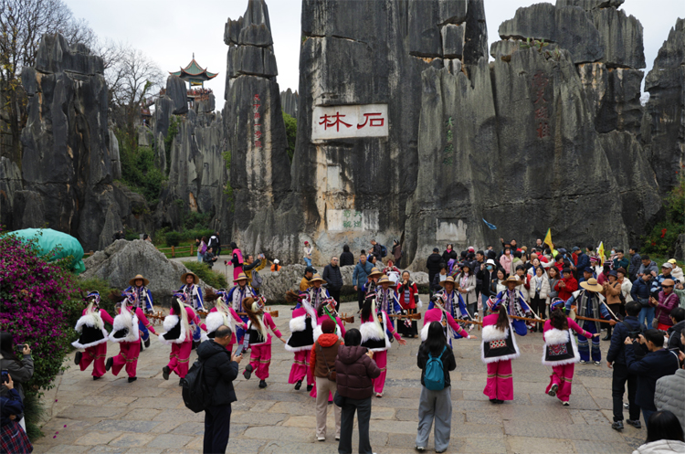 “没想到能在游览美景的同时,近距离感受这么地道的非遗表演,太有节日氛围了!” 来自外地的游客李先生说道。现场,不少游客被浓郁的民族风情吸引,纷纷拍照打卡留念,在欢声笑语中感受着石林非遗文化的温度。