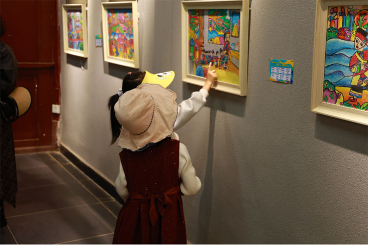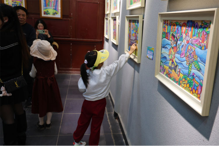 这些作品虽技法尚显青涩,却满溢着最纯粹的童真与最真挚的情感。现场,不少家长带着孩子边看边交流,在艺术熏陶中共享亲子时光。