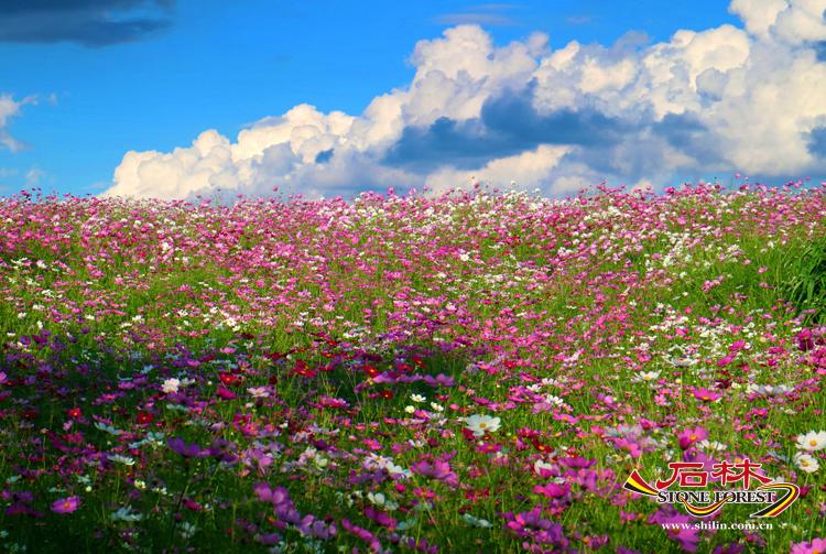 六七十天的生长,让花瓣攒足了力气——粉的、白的、紫的花儿挨挨挤挤,把石海的粗粝衬得愈发温柔。花期会绵延一整个月,足够游客一头扎进这浪漫里,让清甜花香染透衣裳。