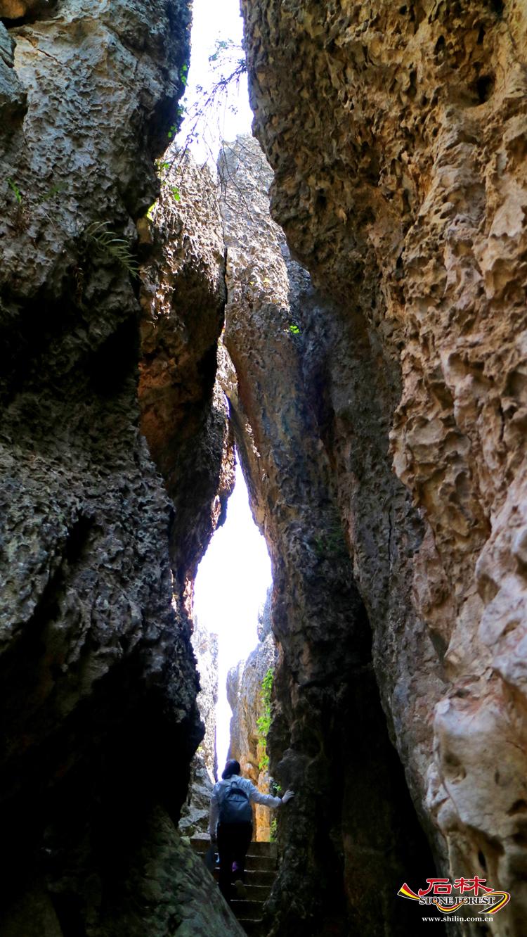 沿陡峭石阶下行,两侧石峰夹成“一线天”,绿荫把暑气啃得只剩清凉,每走一步都像在和“飞仙”共享秘境。