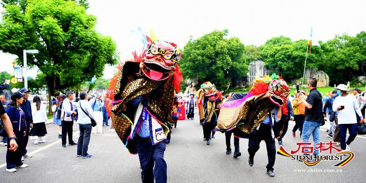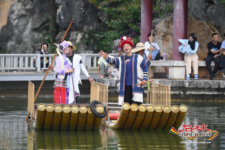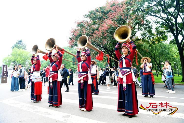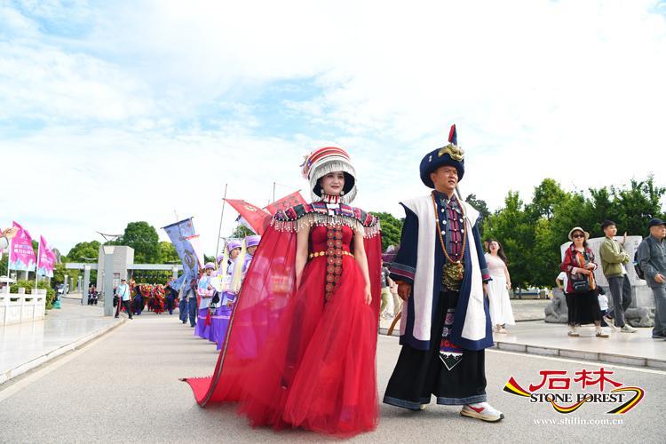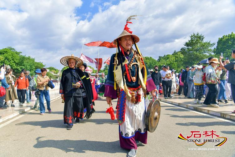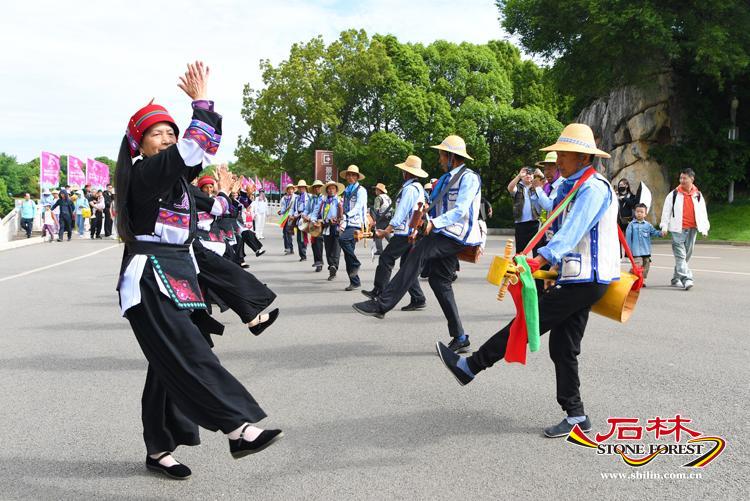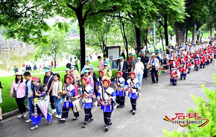 6月1日、2日清晨9:30,“彝韻迎賓,情啟石林”阿詩瑪迎賓巡遊準時開啟。 過山號隊、迎客隊、大三弦隊身著絢麗多彩的彝家服飾,從迎賓廣場出發,沿著遺產石、石林湖、日月廣場一路前行,以熱情歡歌展現彝家兒女的好客風情。 同期,“彝韻重現,光影流年”阿詩瑪生活片段展演同樣精彩紛呈:在天然舞場的民俗大聯歡中,遊客們手拉手共舞大三弦,感受團結的力量; 蓮花池畔,阿詩瑪電影片段對歌重現經典,悠揚歌聲帶您穿越回浪漫場景; 小石林至石林湖路段的沉浸式民俗接親,抬轎、對歌、歡笑,將傳統婚俗的獨特魅力一一呈現。