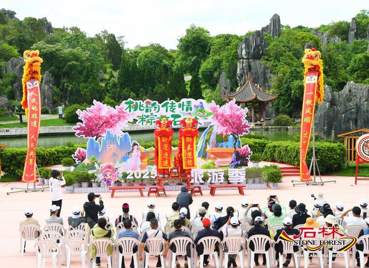 米粽飄香,血桃緋紅,端午佳節如期而至。 當端午的千年文脈,遇上血桃枝頭沉甸甸的豐收喜悅,一場名為“桃韻傳情・粽享石林”的綺夢就此展開。 2025年5月31日,2025年石林板橋血桃文化旅遊宣傳活動在石林風景區盛大開啟。 本次活動以“桃韻傳情・粽享石林”為主題,將當地特色農產品血桃的推廣與端午傳統文化展示深度融合,同時融入濃郁的民俗風情,誠邀八方遊客共赴一場舌尖與文化交融的節日盛宴。