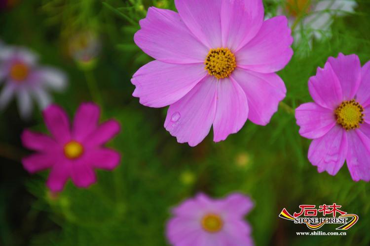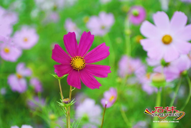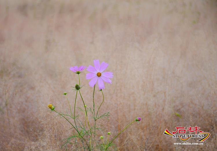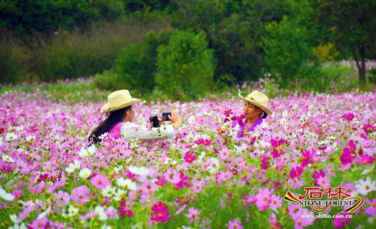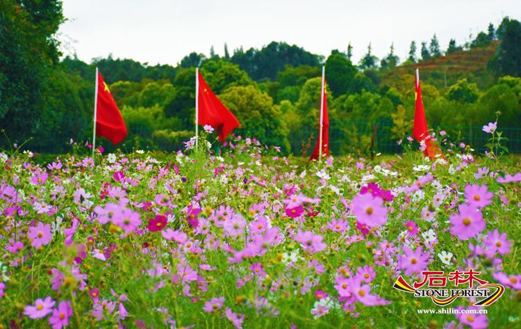 十月,恰逢國慶花-秋英花盛開的季節,五顏六色,排列整齊,隨風搖曳,每一朵花瓣盡情的展現著自己嬌美的容顏,對應的粉黛,雖然已過了盛花期,卻仍然堅守崗位,由粉紅色蛻變為金色,依然吸引著人們駐足拍照。