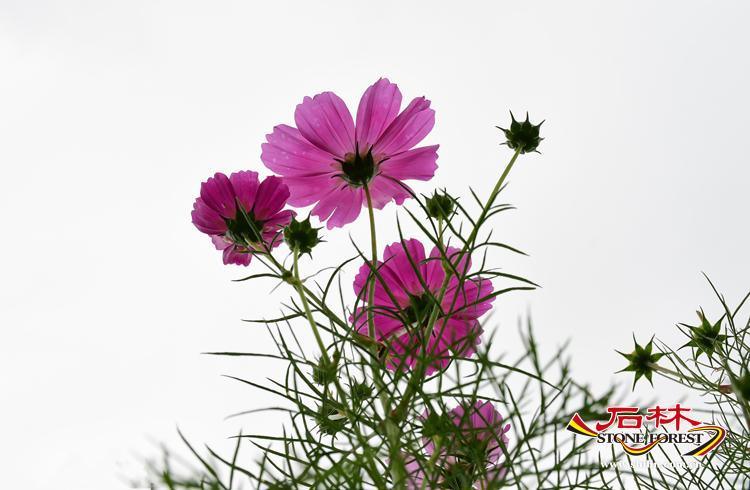 比較幸運的是,路上的淅淅瀝瀝的小雨此時停了,此時的乃古花海,空氣格外的芬芳,大片的波斯菊震撼怒放,粉的、白的、紅的、紫的……朵朵嬌艷的花兒競相開放,為這片紅土地點綴出繽紛的色彩。