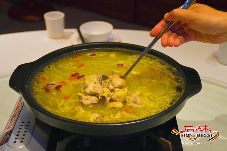 日薄西山,已近黃昏,慕名來到附近的杏林大觀園食藥膳,秋天是進補的季節,在瑟瑟寒風的夜晚,只有一煲暖暖的十全大補藥膳雞湯才能慰藉我們的饑腸。喝一口清澈透明的雞湯,一股淡淡的藥香即時喚醒味蕾,吃完嫩爽的藥膳雞,再放入時令蔬菜,養心菜的清甜和穿心蓮的微苦形成味覺的奇妙組合,最後在幾道特色菜的加持下,果然「飯遭殃」一掃而光。