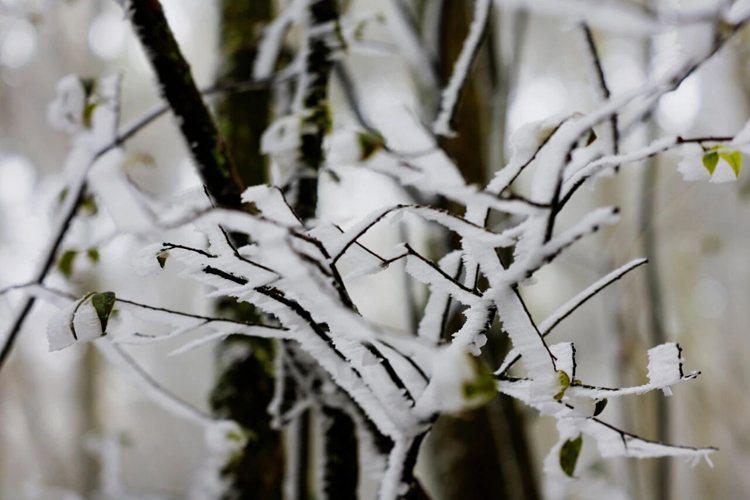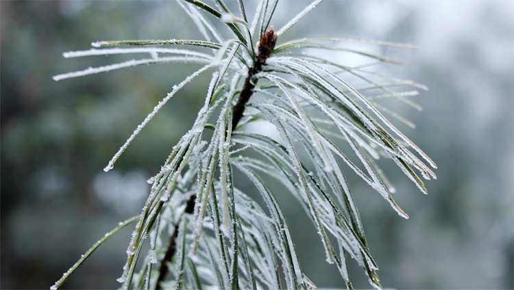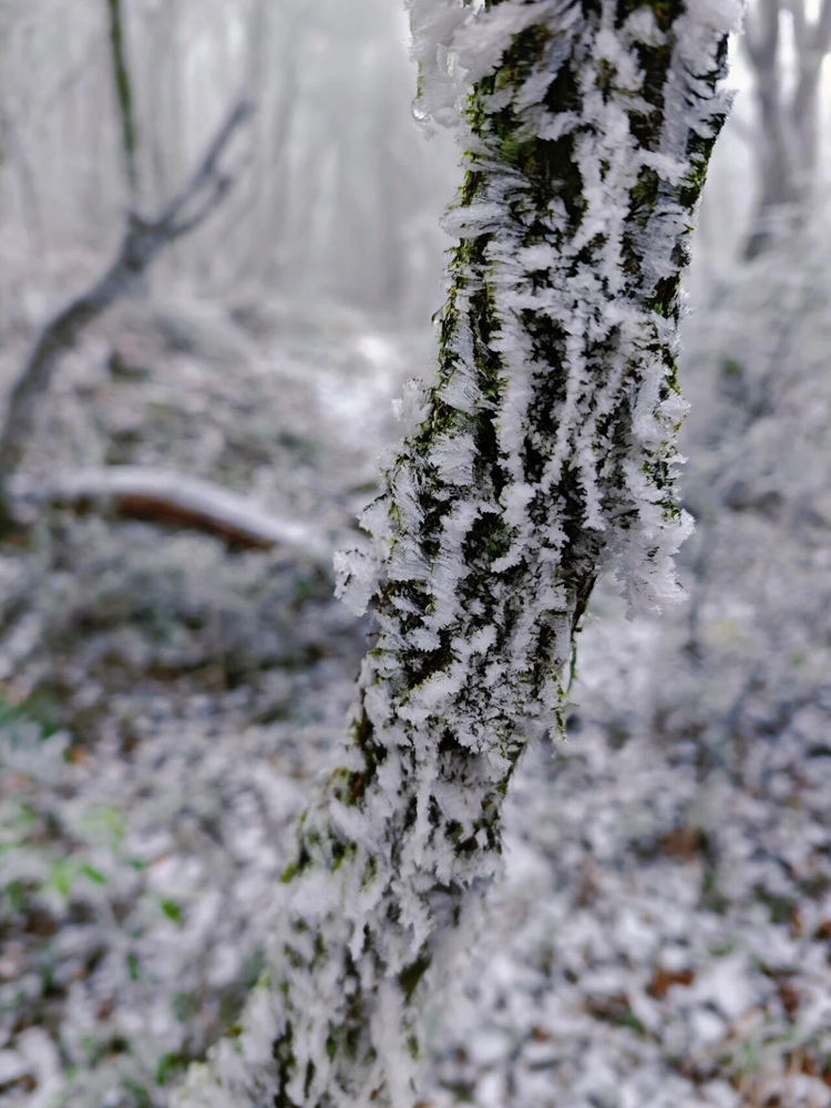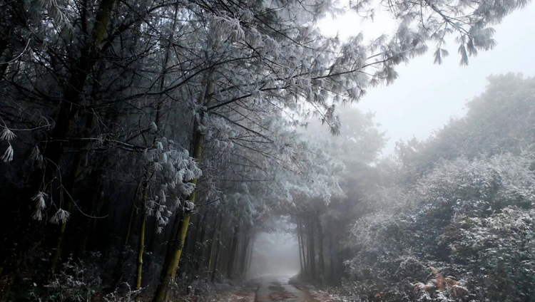雾凇的形成堪称自然的“精雕细琢”,需满足低温、充足水汽、静稳风力三大严苛条件。此次首场雾凇的降临,正是强冷空气与圭山独特地理气候碰撞的结果——圭山主峰海拔2601米,森林覆盖率达80%,独特的高海拔地理环境与湿润气候,为雾凇形成创造了绝佳条件。与北方雾凇不同,圭山首场雾凇更显灵动:冰晶包裹着翠绿枝叶,点缀着山间红果,“玉树琼枝映绿萼”的独特景致,既有北国冰雪的壮阔,又不失南国的生机与灵秀。