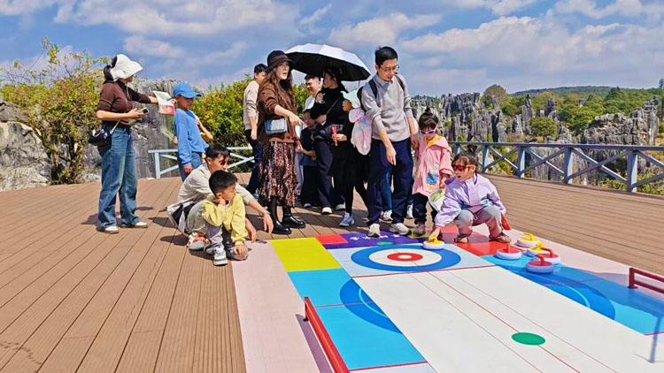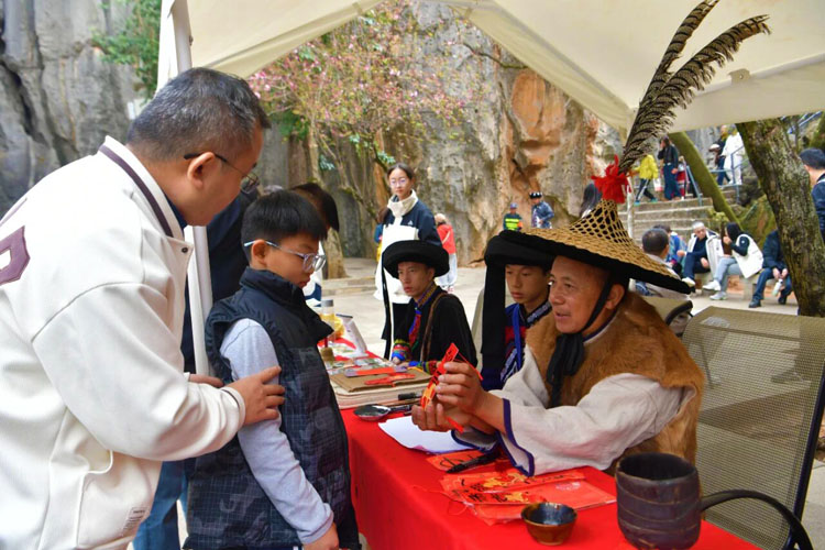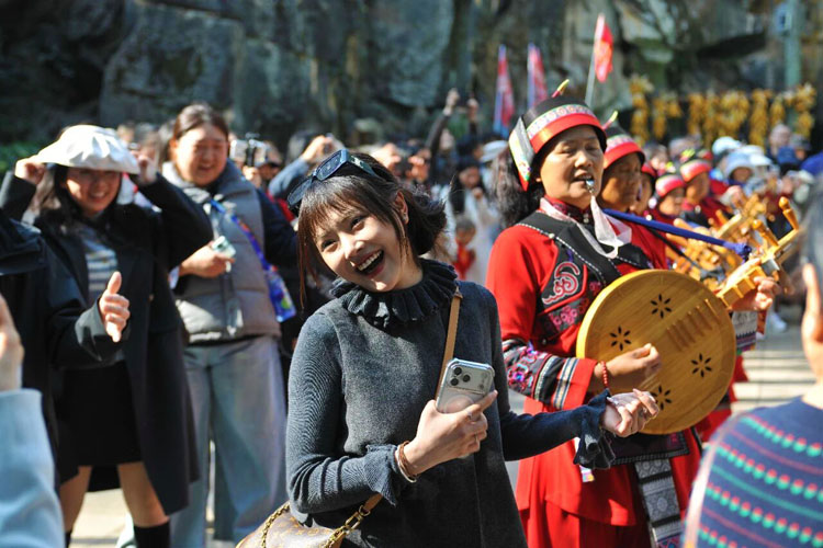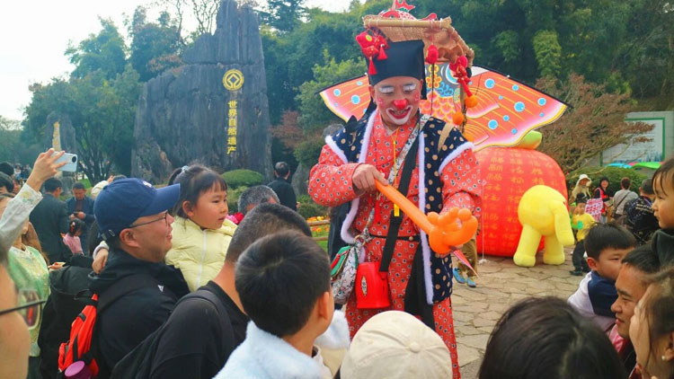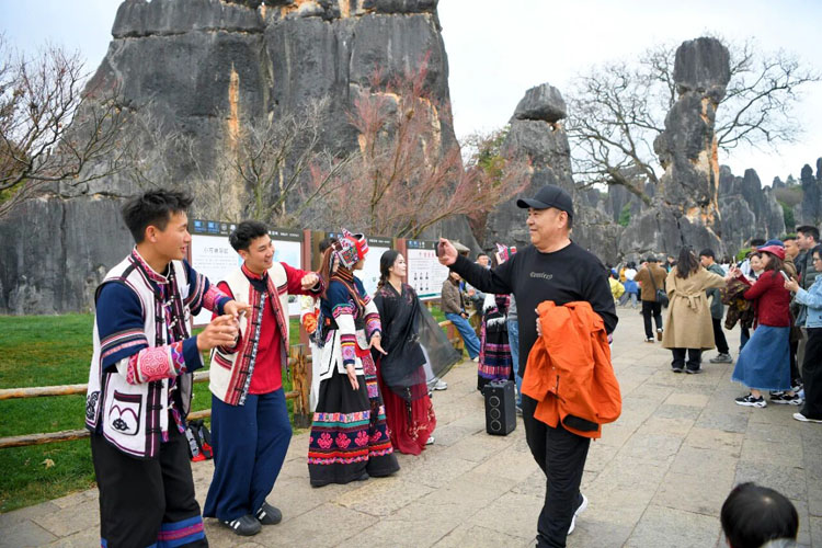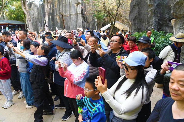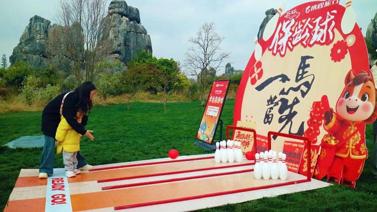 这个春节,石林的热闹不打烊,游客在赏奇石、品民俗、玩互动过程中,定格新春美好,尽享假日狂欢。