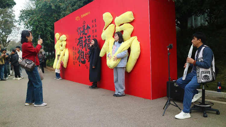 阿诗玛经典对唱实景演出轮番上演,游客可现场合唱互动;集福打卡、国风杂耍近距离互动等活动趣味十足,大家争相参与集章兑好礼、学杂耍技艺,沉浸式感受石林的民俗魅力。火马迎春主题花市、石林湖桨板水上运动等点位也是热门打卡地,随手一拍都是大片,不少游客笑着调侃“手机内存根本不够用”。