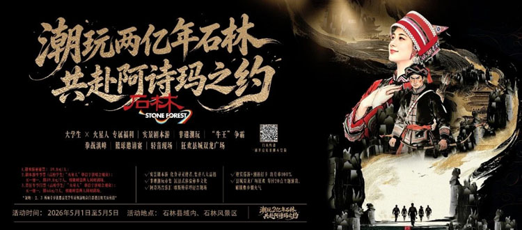 当两亿年石林迎来八方嘉客,当阿诗玛的歌声穿越山谷,2026年五一假期,石林风景区以“潮玩两亿年石林 共赴阿诗玛之约”为主题,备下一场融合自然奇景、非遗民俗与沉浸式互动的文旅盛宴,邀你赴约!
